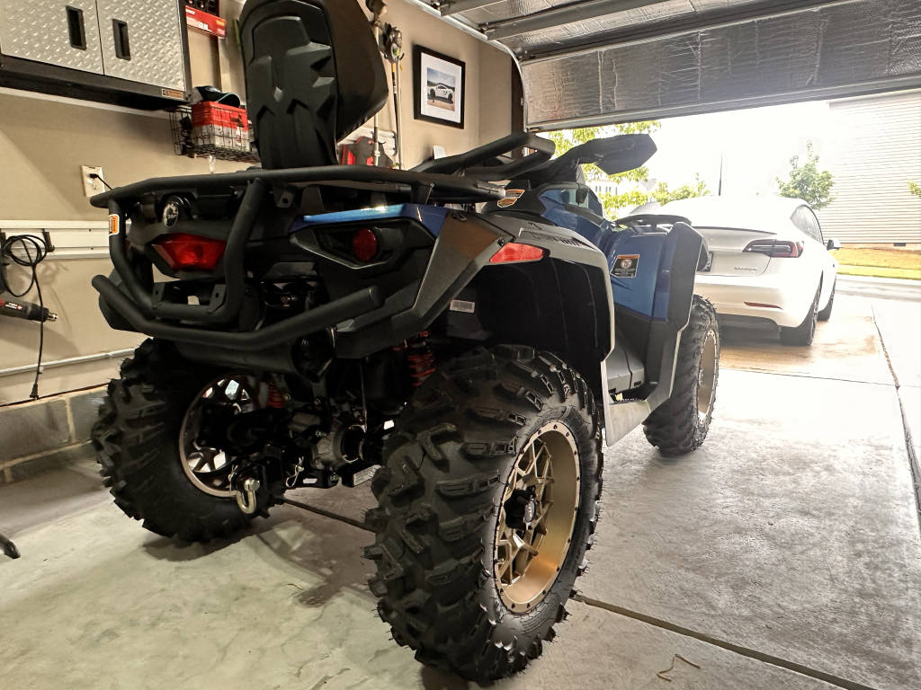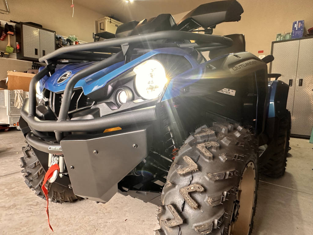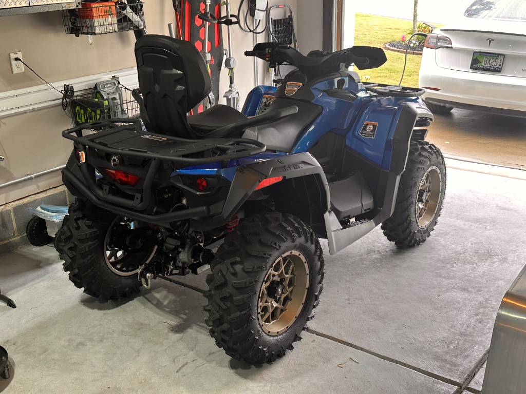 I purchased this unit new in October 2022 hoping to ride with a friend. Unfortunately, that did not happen and my unit has only seen 1 day of riding and has since sat in the garage the last 6 months. This is the very last of the amazing V-Twin engines. It sounds amazing to listen to these engines at idle. It has 2.9hours and 14 miles on it. It carries the balance of the BRP factory 4 year warranty good at any CAN AM dealer. New these only came with 6 months of warranty. I have previously owned a 570 and knew the first thing I wanted to do was change the stock suspension. I have added the ELKA stage 3 rebound adjustable shocks. These fix everything wrong with the stock shocks. The shocks have 0 miles on them but are currently installed. I paid $1800 for them from ELKA. I still have the original shocks that will go with the quad. I also added the following: -ELKA Stage 3 shocks -BRP receiver hitch -BRP large fender flares with mudguard extensions -BRP Metal foot pegs for boot traction -BRP Shift lock kit to prevent theft -BRP Extreme front bumper -BRP Locking gas cap -BRP LT/RT Radiator shields -BRP Storage box when back seat is removed -ITP Hurricane 14×7 wheels in bronze (Looks amazing against the blue) -NEW Take off 26″ Terra cross tires from another new Outlander Added LED lights in the front grill to make the front look more complete Upgraded low beams to LED bulbs ATV is in 100% new condition with no wear present These are all very tasteful modifications if you were to buy one of these new and do yourself would cost over $15,000. This is a loan balance with Sheffield Financial. They are known to be super easy to work with.